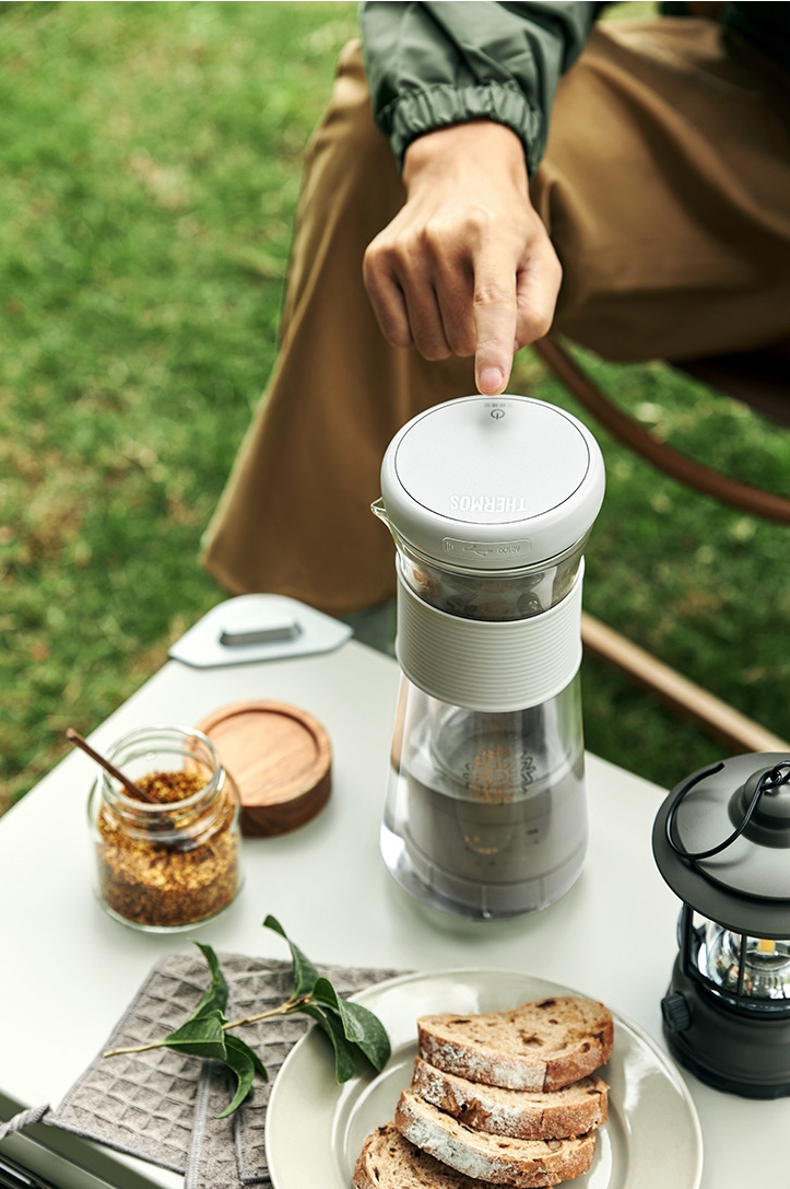 致力為消費者營造生活儀式感的THERMOS膳魔師首推「冷萃咖啡機」,希望藉由動手親萃,享受沉浸式體驗,為追求個人品味的消費者創造質感生活。人們只需專注沉浸在咖啡真空抽吸萃取過程,觀賞液體緩緩升降、氣泡蔓延又消逝,並感受機器如白噪音般的運作聲響,靜待完成之時,隨心情喜好加入冰塊、檸檬汁和蜂蜜,爽口的冰萃特調一氣呵成。上班前為自己萃一杯咖啡醒腦,開啟一天好心情;放假不想出門,使用「冷萃咖啡機」也能隨時品嚐舒心甘甜的咖啡風味!在輕鬆悠閒的自宅環境製作咖啡,更是忙碌現代人的療癒新選擇。