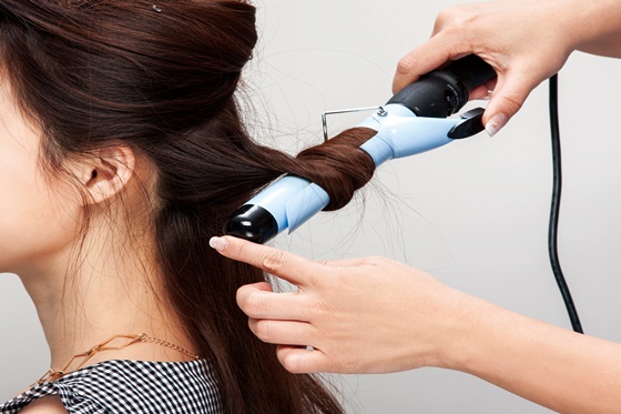 #電熱捲全部拆下後,再使用大捲度的電棒,在髮絲表面或局部進行線條弧度微調。