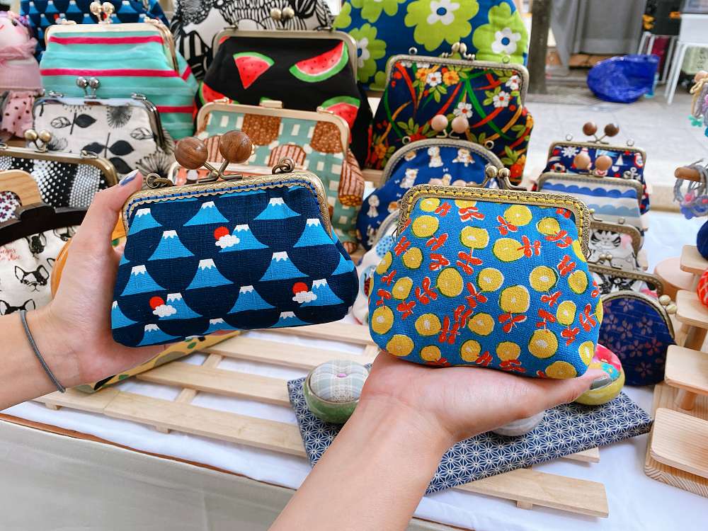 手作攤位還有以日本布製作的包包,每一款都相當獨特,且隨附掛鍊,當成手拿包或肩背包都很可以。
