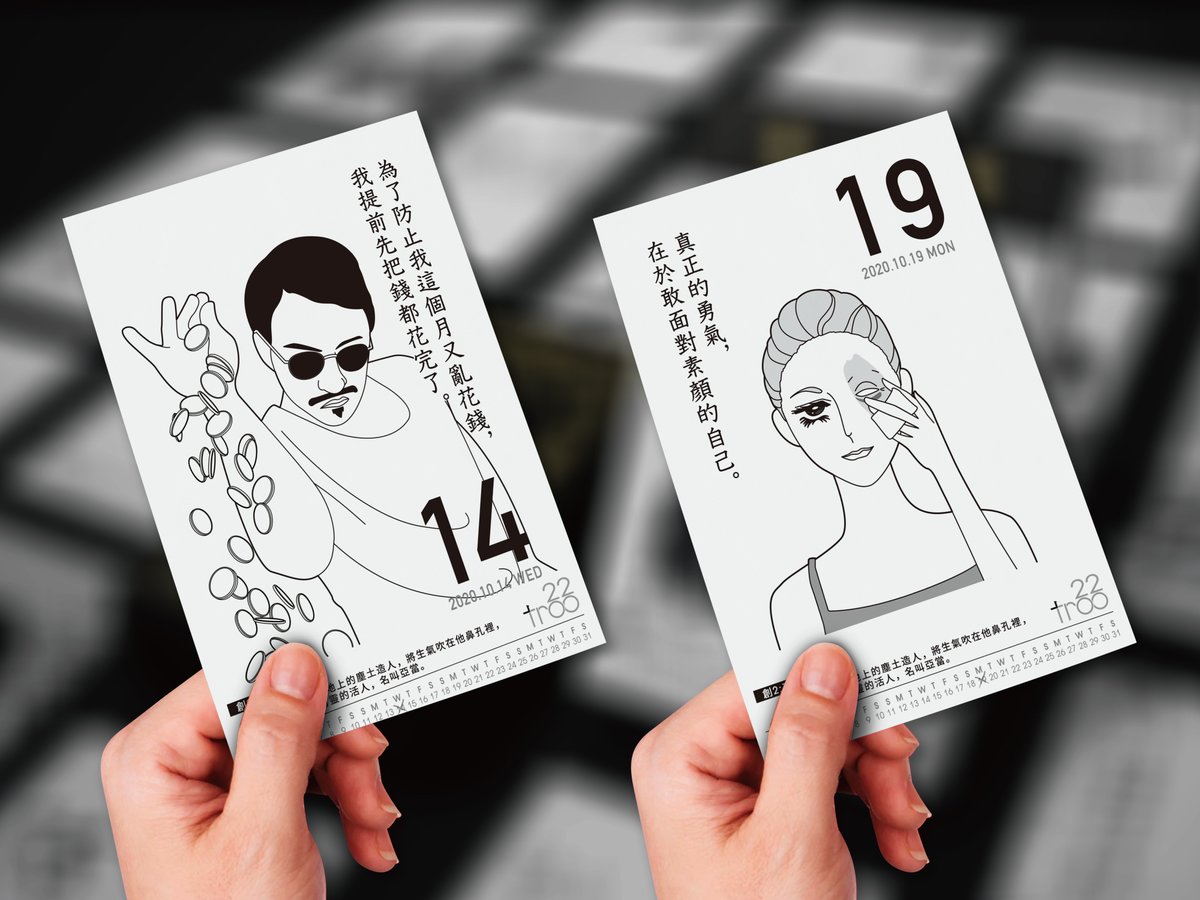 每一頁都有不同的「吐槽主題」,像是「你說的話,我連標點符號都不信」、「為了防止這個月把錢花光,所以我先把錢都花完了」、「真正的勇氣,在於敢面對素顏的自己」,這些搞笑的金句,讓每天被現實壓垮的你能找到出口!目前《鼠算日曆》也正在嘖嘖平台上進行募資,還有一系列的有趣贈品唷!