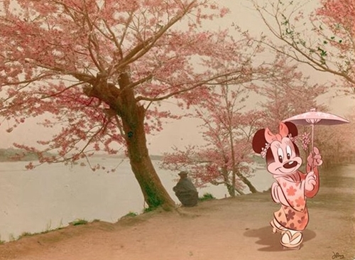 這些畫都是由一位迪士尼的腳本動畫師John Ramirez所創作的,因為他非常喜歡日本,所以就想說如果把米奇放到19~20世紀初應該會很有趣吧?於是就找來了許多日本的古代繪畫作品,加上迪士尼人物之後,放到自己的Instagram上,沒想到意外引起許多關注。