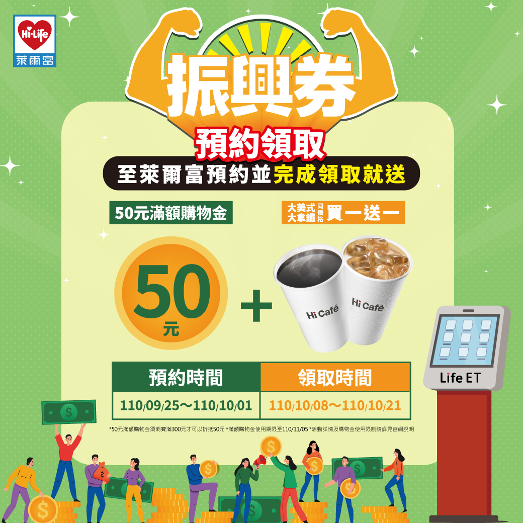 只要來到萊爾富共同綁定振興五倍券,就可以享有可享大杯美式咖啡、拿鐵同價格買1送1的優惠,而領取紙本券則可以享有指定咖啡買一送一的優惠,再加碼送滿額購物金50元(滿300元即可使用),萊爾富會員領券還能另外獲得會員點數30Hi 點,更有機會抽中Dyson Supersonic吹風機喔。