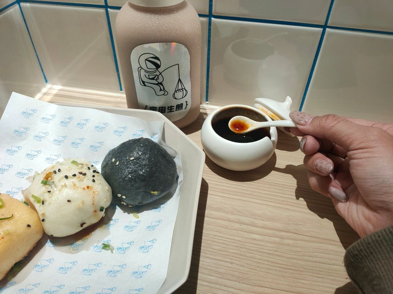 除了生煎包以外,店裡還有販售原味、抹茶、芝麻和伯爵四款口味的豆奶,讓妞妞們都可以買搭配著套餐享用,即使是吃夜市般的傳統小吃,也能有更健康、更環保的選擇啦!妞妞們想試試植物肉是什麼樣的滋味嗎?那就快來永康街的「宇宙生煎」嚐嚐吧。