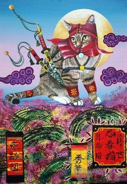 這一系列的作品都是由日本的畫家田中秀治所創作的,他是一位出身於福岡的畫家,因為本身非常喜歡貓咪,也經常會在部落格上分享養貓的大小事,所以作品都是以貓為主題來進行創作,並加入了浮世繪的風格,在貓咪相關的作品當中可以說是非常的獨樹一格。