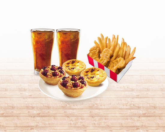 想和另一半一起在家享用甜蜜下午茶的妞妞們,肯德基也推出了Uber Eats限定「雙人撻撻下午茶套餐」,內含原味蛋撻2顆、莓果奶酥撻2顆、雞塊脆薯點心盒1份、冰檸檬紅茶2杯,莓果奶酥撻擁有手工163層撻皮與滑順馥郁卡士達內餡,搭配天然鮮凍蔓越莓與珍珠糖餅乾酥,口感更升級。