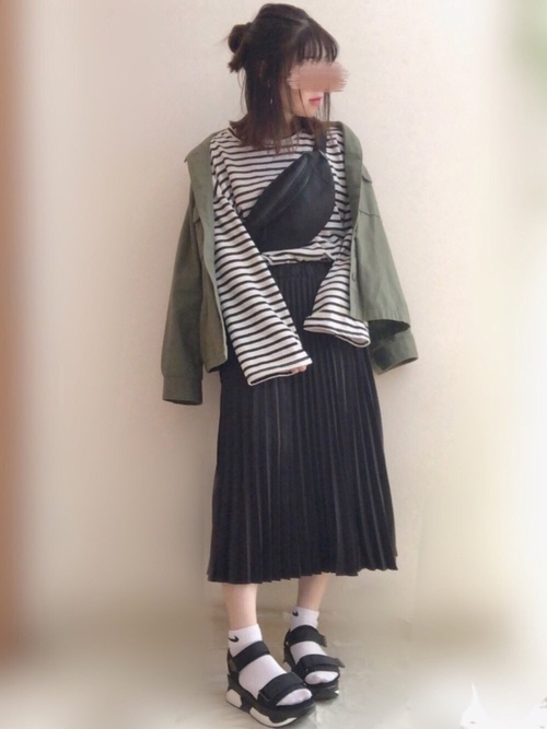 每次在看日本妞妞們分享穿搭,軍綠色的外套一定很常會出現,是她們的IT單品!想要整個人看起來很潮又時尚,就能像這位妞妞一樣利用配件來強調,像是腰包、涼鞋配襪子等等。