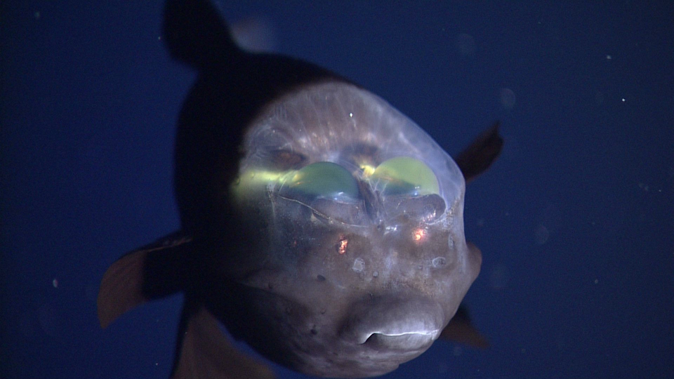 根據MBARI表示,他們早已利用「遙控潛水設備」進行多達5600多次的探測任務,而每次任務加總起來共拍攝了超過2萬7600小時的影像,但是只碰過「太平洋桶眼魚」9次。牠有著透明的頭部,在探測器的光線照射下,可以清楚看到眼球的綠色構造,綠綠的圓形眼珠看起來真的相當獵奇。(嘴巴上方是兩個鼻孔嗅覺器官)