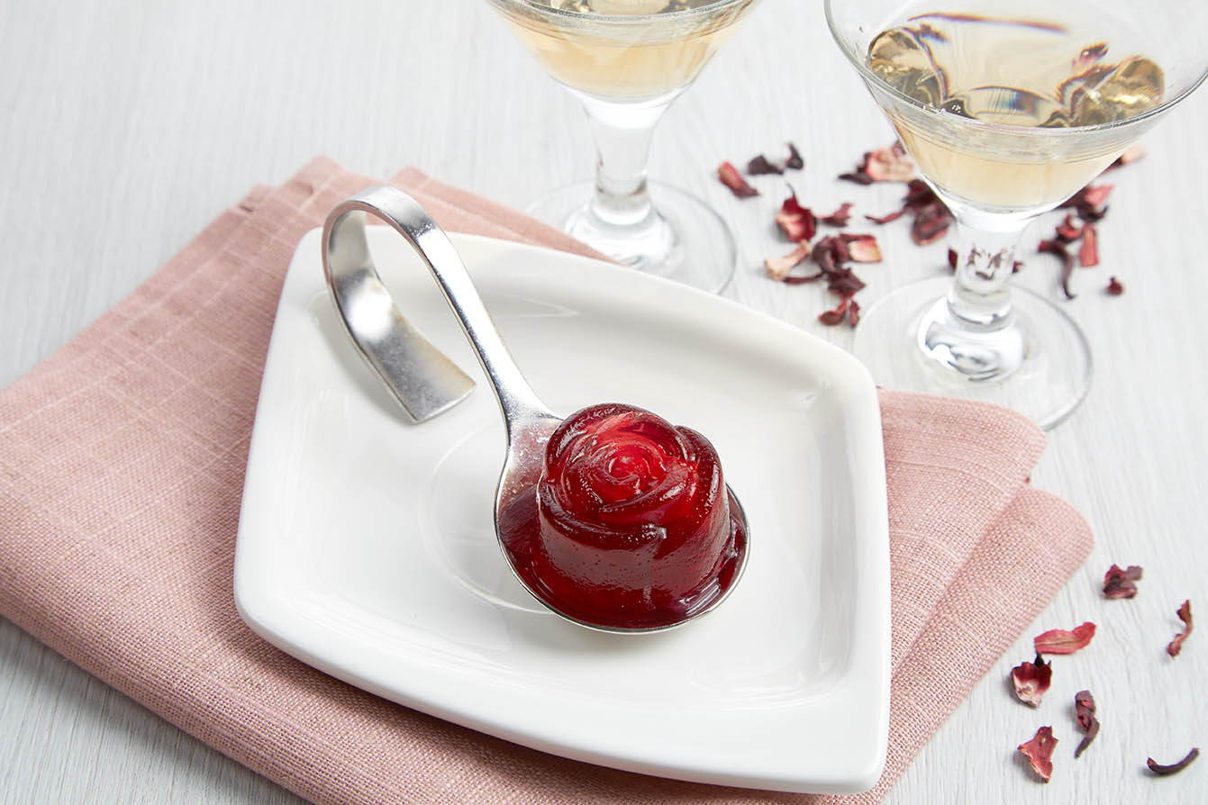 西堤牛排提前嗅到夏天氣息,推出充滿夏季感的「沁涼海鮮香檳凍」,選用上等紅酒、香檳,搭配魚卵、章魚、鮮蔬及紅酒洋蔥製作而成,口感清爽、香氣迷人,主廚特別塑成玫瑰花造型,有如紅寶石般的色澤,就像餐桌上華麗點綴的一朵紅玫瑰。
