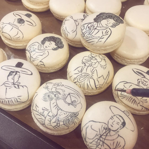 這個是在畫韓國古代的萬人迷嗎?看來是受多位女生景仰的一位書生,哈哈~馬卡龍上面的圖案竟然還有故事,太有趣了吧!