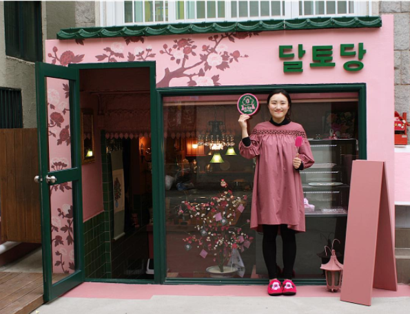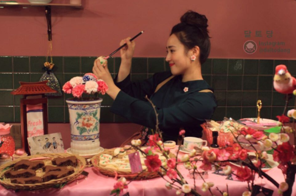 韓國有一位女甜點師叫做daltodang,她開在釜山的小甜點店daltodang(달토당)充滿少女風格,在粉色的裝潢中加入古代韓屋的特色,有種現代和過去的衝突感。特別的是,她的甜點和店面一樣都充滿韓國風,把韓國的歷史特色都畫上甜點了!