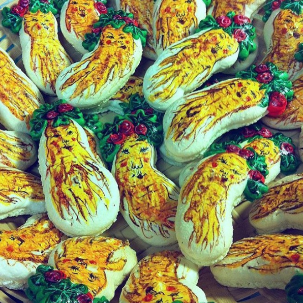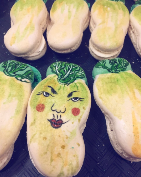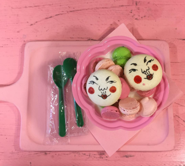 把韓國特產「擬人化」的馬卡龍看了讓人會心一笑呢!馬卡龍還配合人蔘和蘿蔔的形狀,刻意做得較長、較大,配上有點厭世的表情,超有特色的!
