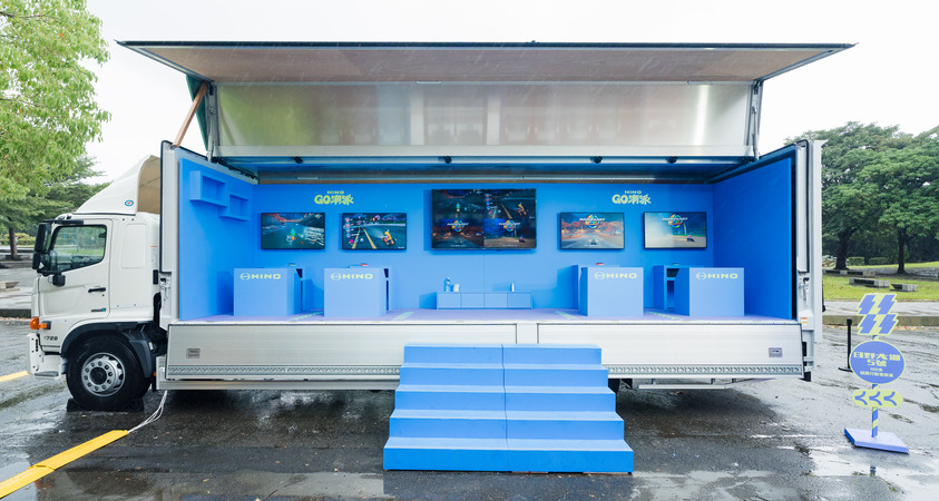 沒看錯,HINO 直接把 500 系鷗翼車廂改造成行動電競車!妞妞們可以上車與朋友連線對戰《瑪利歐賽車Switch 2》,不只能玩得過癮,也感受到車款空間設計的巧思與應用,是不是很潮!