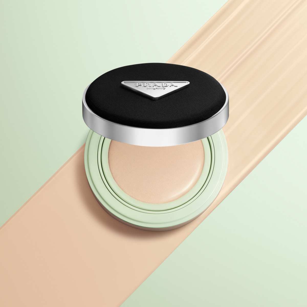打開來內盒選用品牌形象的顛覆綠色,氣墊蕊心可重複填充,專為混和肌訂製的粉體,帶來極輕盈貼膚的原生微霧光妝感,徹底解決為過度控油,反而偏乾及強調保濕卻過於悶黏的底妝痛點。專為亞洲膚色設計LC5皙色、LN10自然白皙、LN5健康白皙、LN25健康自然四款色選,還有SPF50+PA+++最高防曬係數。融合了經典熱賣高訂香水【PRADA水印私藏系列-浮夢鳶尾】清冷木質花香調,在上妝時,還能聞到淡淡的香氣。