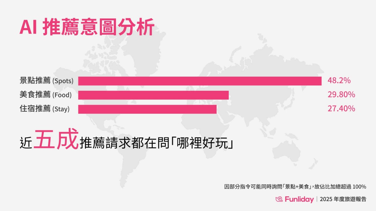 (圖說:Funliday 數據顯示,近五成的台灣旅客的意圖為景點推薦)