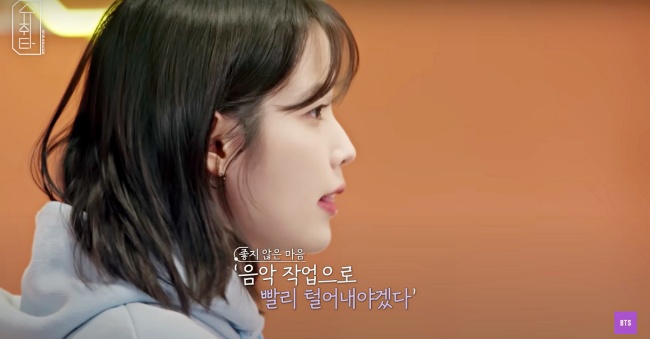 第一次到訪HYBE娛樂的IU,一臉興奮的自爆:「本來今天的狀態很疲憊,一進到這棟建築物裡,全身馬上打起精神了!」接著一直睜大眼睛狂讚嘆:「哇~電梯超大、還閃閃發光的」,只不過沒想到連巨星出入都得出示證件,IU透露:「很擔心被趕出去,因為沒帶身份證,所以緊張的拿了護照接受檢查」。