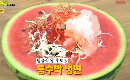 Source: 수박냉면 만들기! - Youtube,4월22일 생생정보74회, 인천 화평동맛집- 통수박냉면 <일미소문난냉면>