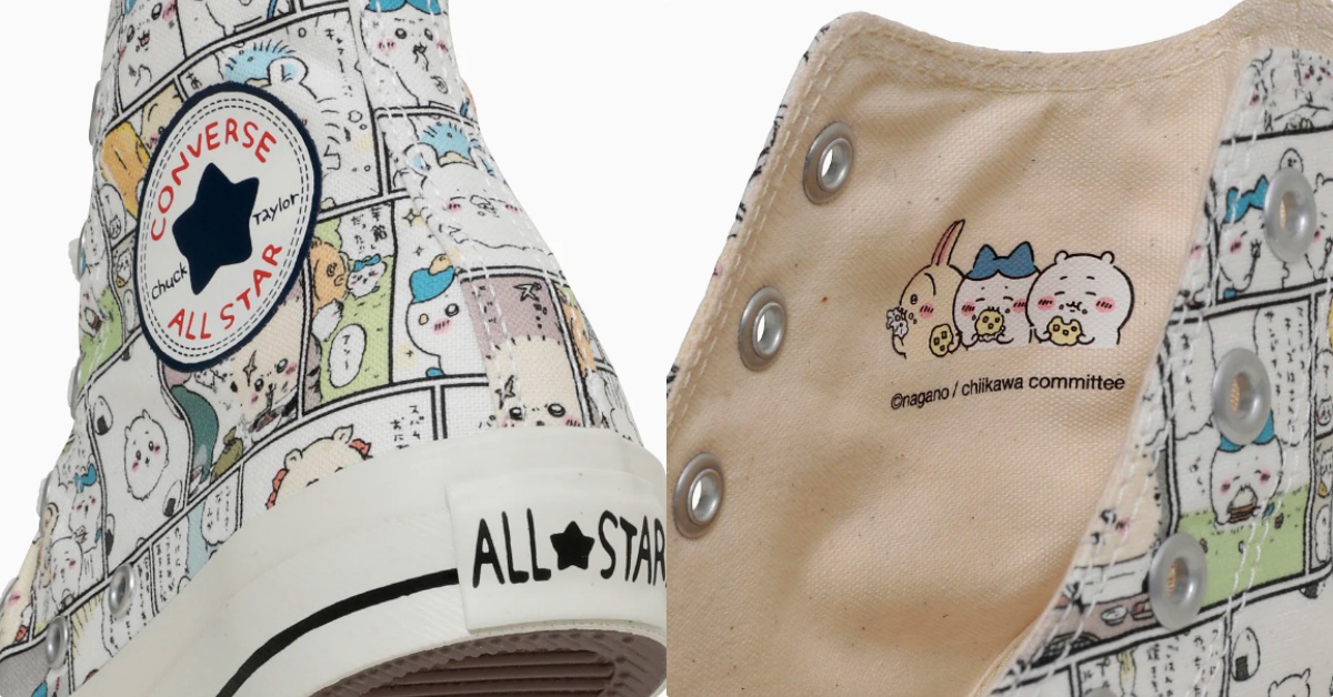 吉伊卡哇角色們的互動通通上鞋!ALL STAR CM HI 奶油高筒鞋上的滿版連環插畫中,大家都忙著吃吃吃、上演集體吃播(笑),就連鞋內側都印著3隻「狂嗑毛毛蟲麵包」的療癒模樣,想把小可愛們帶回家?日本在2月26日限定開賣必須把握住啊~