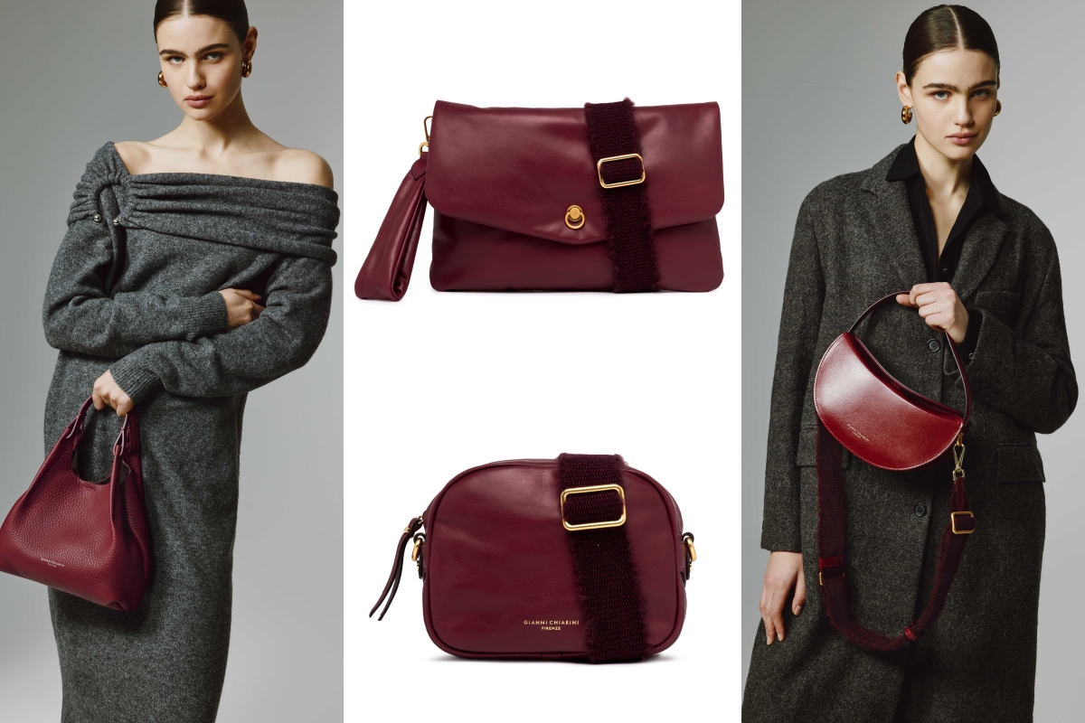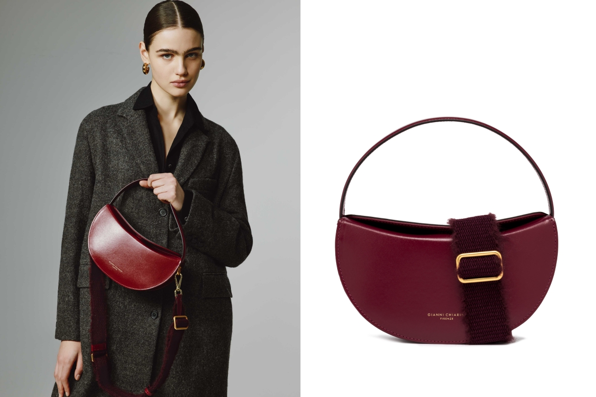 為呼應品牌一貫訴求的優雅時尚,Gianni Chiarini特別選用深邃濃郁,富有高貴特質的酒紅色皮革,為春節裝扮增添一股知性成熟氣息。喜而不俗的酒紅除了自帶節慶氛圍,亦是很適合亞洲女生的襯膚顏色之一,可讓肌膚顯得更加白皙透亮,讓隨身攜提的包包帶有畫龍點睛的效果。