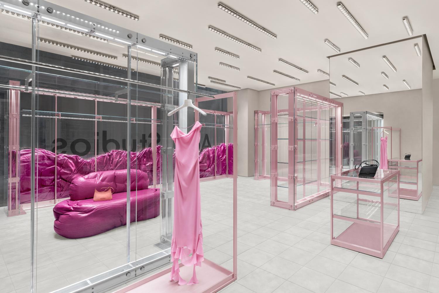 Acne Studios 台灣首家專賣店正式插旗於台北信義新光三越A9館一樓,遵循品牌全球商店設計概念,將台北市獨特的年輕活力和文化與 Acne Studios前衛創新的精神置於一室。從店門外看過去展示透明和反射效果的玻璃落地窗,粉紅色陽極氧化金屬為光線充足的空間賦予棱角分明的簡約個性!