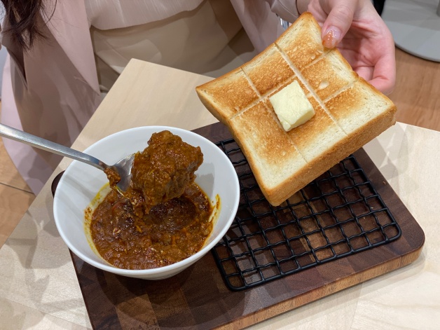 不讓生吐司專美於前!SAKImoto的內用鹹食也是網友熱愛的品項,除了義式番茄蔬菜通心麵之外,「大直忠泰店」與香料咖哩先行者「通庵熟成咖喱」內用期間限定聯名推出「熟成咖哩生吐司套餐」,使用13種香料調和,經過曝曬、烘乾、拌炒等多種製成,生吐司的清香搭配咖哩醬的濃郁,交織出多重風味,喜歡吃咖哩的妞妞們一定不要錯過!