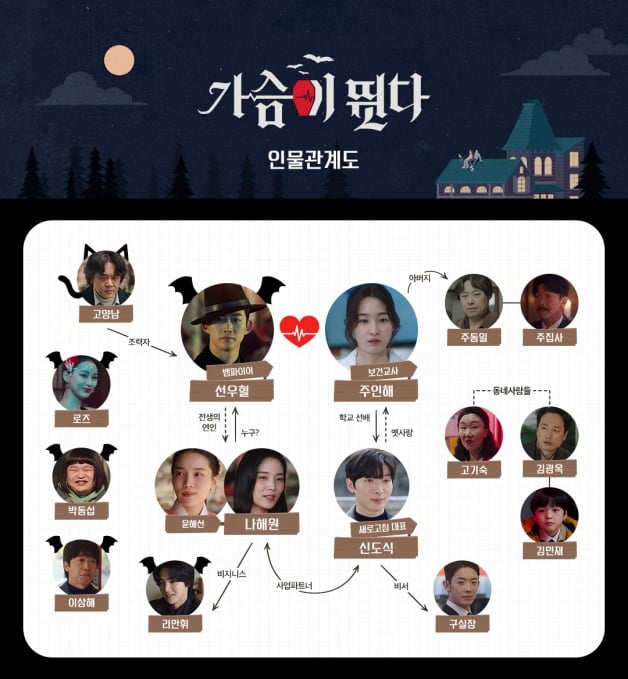 玉澤演飾演宣於血,300歲以上的吸血鬼,心臟從未跳動過,想要成為人類體會「撲通撲動」怦然心動的愛情,京城無人不知無人不曉,長得帥又會穿搭的潮流引領者,非常紳士,總是被女人圍繞,是日免息的主人(白話文:遮陽的休憩處aka俱樂部),喜歡觀察墜入愛河的人類,為了成為人類試過各種方法,像是曝曬、吃蒜、求佛(?),在出棺的D-day前一天醒,成為既不是人類,也不是吸血鬼的半人半吸血鬼,能感受到人類的五感,但吸血的本能依然存在!