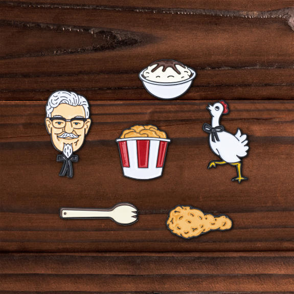 以炸雞為主題的系列別針不論別在衣服上或是包包上都超搭!