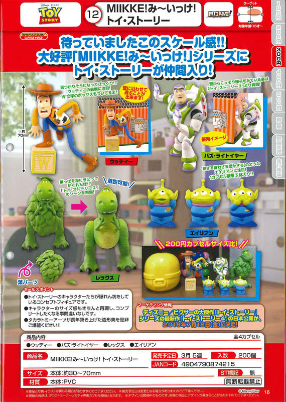 WOW! 今年玩具總動員4終於要在今年六月上映了!(看到新聞的那天,小編晚上就睡不著覺了XD) 而扭蛋公司們開始推出相關的系列扭蛋,由TAKARA TOMY 公司旗下玩具品牌「T-ARTS」打頭陣,相信玩具總動員迷也在期待這款吧!!