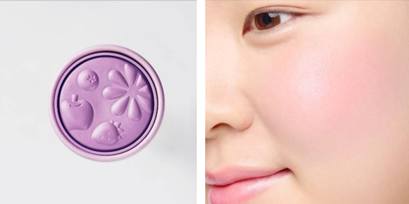 冷色調紫色腮紅,調和亞洲人黃肌,中和暗沉和蠟黃感並呈現清透乾淨的粉紅色,如同從肌底透出淨白粉嫩。