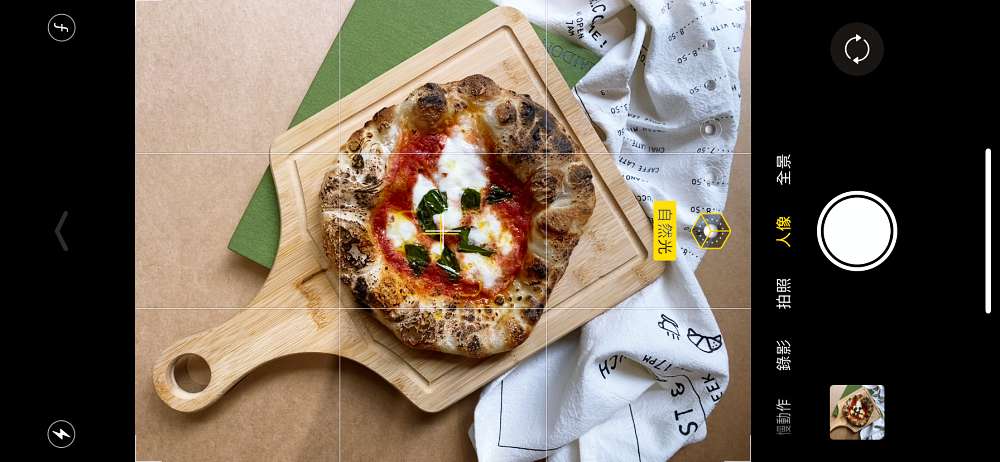 由上往下拍是社群平台上相當流行的拍攝角度,如果妞妞手上拿的是iPhone,可以從設定中開啟「格線功能」,由上往下拍時手機畫面會顯示兩個「+」,只要讓它們重疊即可拍出平衡的畫面。除了將食物放在正中間之外,也可以將它擺至左或右邊,切掉另一半,讓畫面有更多想像空間、提升延伸感。