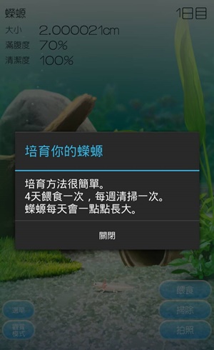 然後不知不覺,蠑螈就長大囉!是不是覺得原來養蠑螈這麼簡單呢?最後手機小姐要提醒大家,這只是手機遊戲,真實的水族生物們可是需要愛心、耐心呵護的喔!