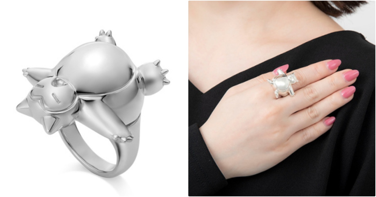 吃飽睡、睡飽吃…懶洋洋的胖胖卡比獸也被做成飾品啦!這聯名系列以卡比獸為主題,把牠的日常模樣神還原在項鍊以及戒指上,在動畫中總是攤在地上的卡比獸,可以直接戴上指尖帶著走!!!(感覺好重?)