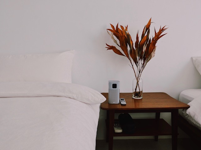 全棟共有四間房,分別在二、三樓,房內空間很大,床鋪和枕頭軟柔度適中,保證了一夜好眠,沒有電視,入住時工作人員會交付一組投影機,也會耐心指導,直接投影在牆上的效果很好,就像躺在床上的小型電影院