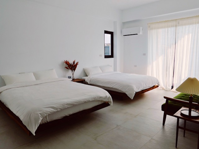 此時此日,位在西衛,距離馬公市區騎機車不到10分鐘,是相對安靜的社區,整棟民宿以白色為基底,調入深色調木質傢具,簡約又有質感