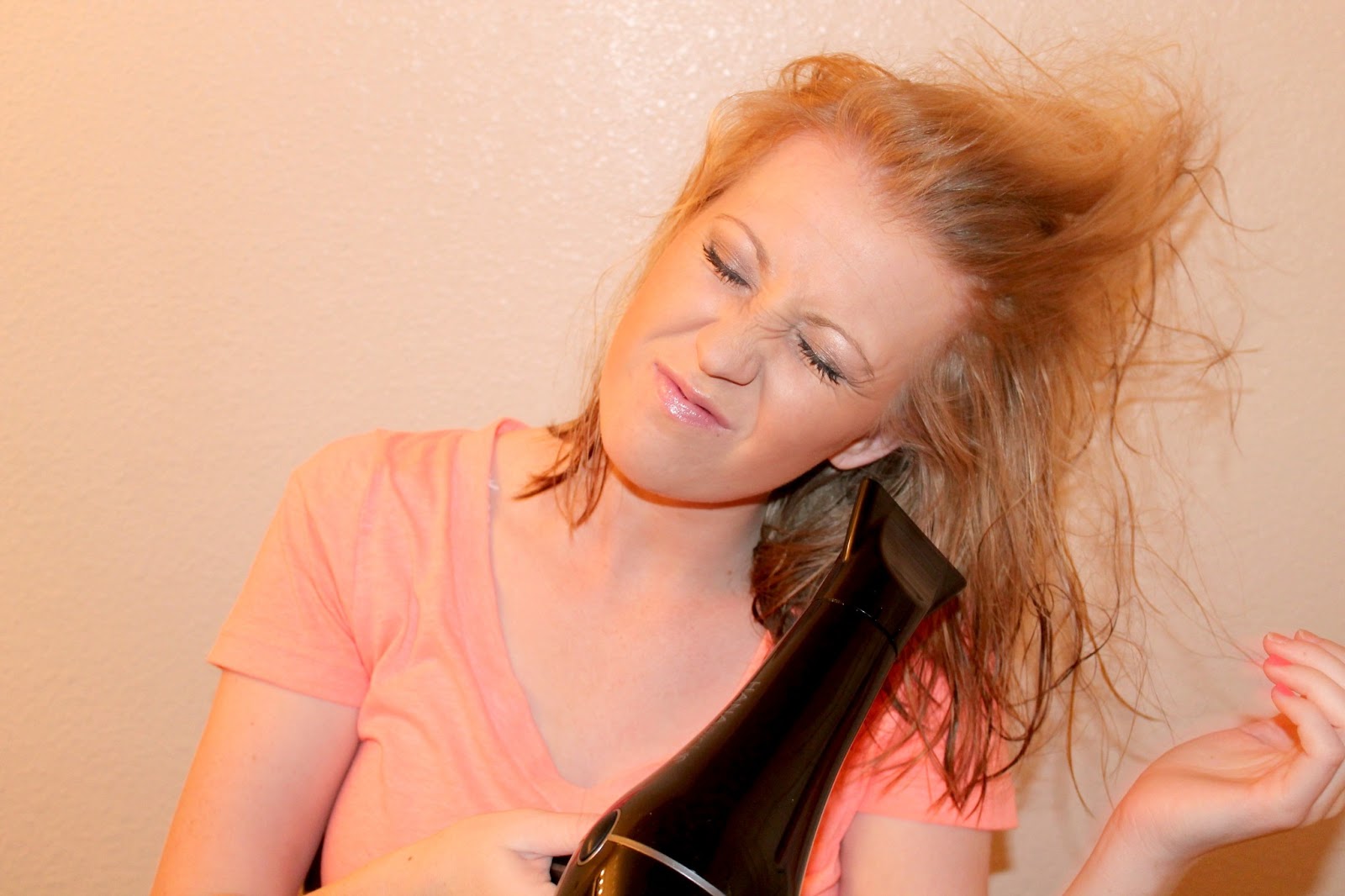 想學造型師用圓梳把髮尾吹彎,煞有其事地把頭髮繞上圓梳吹完後,卻發現自己不知道怎麼把卡在頭髮上的圓梳弄下來。