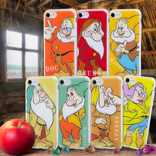 在迪士尼公主手機殼中,以《白雪公主》為主角的款式其實挺常見的,但把配角當成背景的手機殼似乎就很稀奇。所以當手機小姐看到七矮人推出了「一人一款」的手機殼時,眼睛真的瞬間亮了起來!