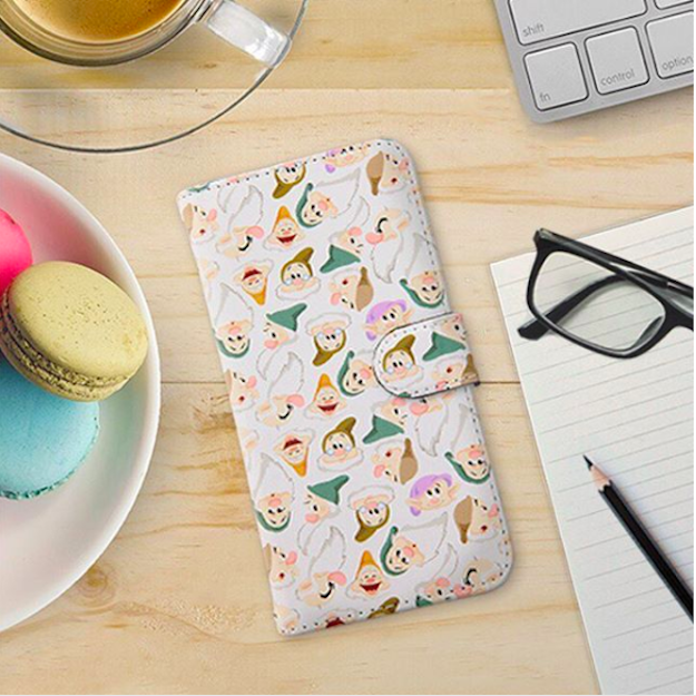 除了個人款之外,還有集合了所有小矮人的可愛風滿版翻蓋款。這個款式上就沒有標示每一位小矮人的名字,這樣大家還記得誰是誰嗎?手機小姐只認得帶著眼鏡的萬事通⋯⋯(因為只有他戴眼鏡,所以最好認!)