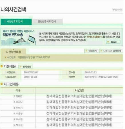 南韓爆料網友表示自己從首爾中央地方法院資料庫查詢到所有捲入這次賣淫事件者的名單。其他網友立刻跟進搜尋,竟然也在法院網站查詢到了一模一樣的名單。