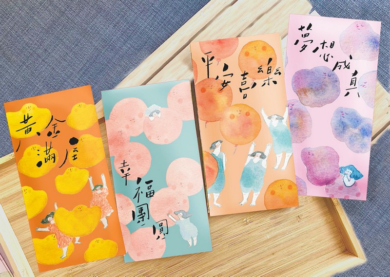 如果想要送出與生肖無關的紅包袋,妞妞們則是可以選擇由香港插畫家Dodolulu繪製的4款水彩風紅包與春聯,讓粉嫩的色系填滿這個新春!款式分別有「平安喜樂」、「幸福團圓」、「黃金滿屋」、「夢想成真」等祝福語,分別更對應了氣球、湯圓、金元寶、雲朵等元素,送出相稱的祝福話給對方,讓收到的人心中都能湧上一股暖流吧!
