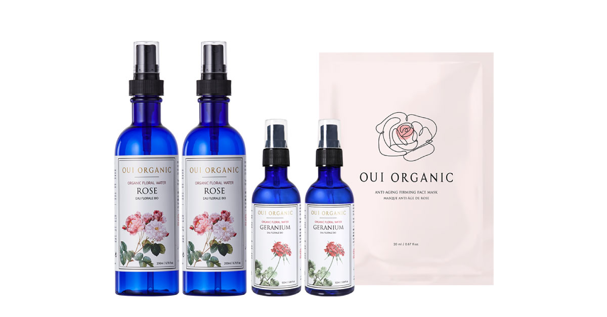 美妍保濕面膜體驗組:原價NT$4,250/59折優惠價NT$2,500(Oui Organic 玫瑰純露花水200mlx2、Oui Organic玫瑰天竺葵純露花水100mlx2、Oui Organic玫瑰精萃煥顏保濕面膜1片)