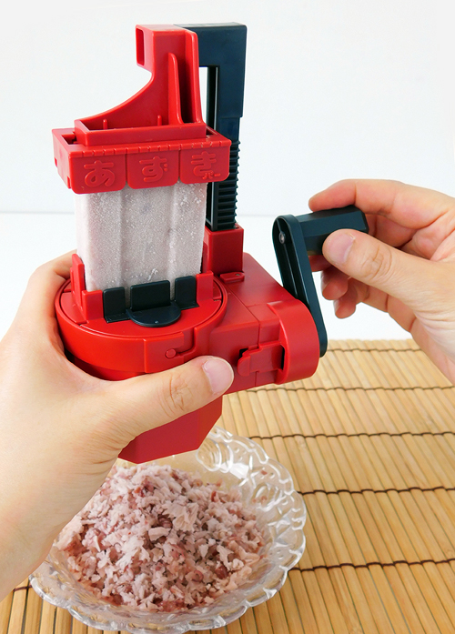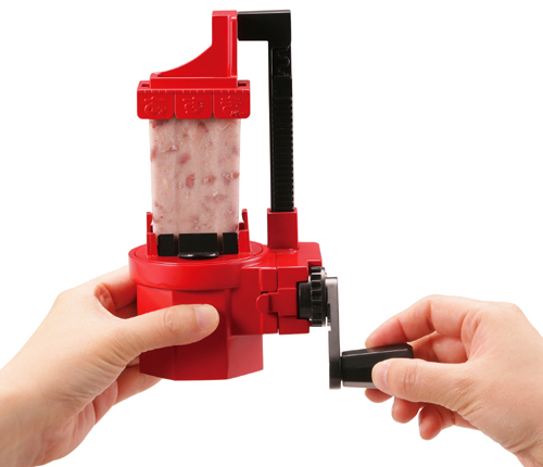 至於使用方式相當簡單,只要把冰棒插上去後旋轉旁邊的手把,冰棒就會如雪花般被削成一片片,輕輕鬆鬆完成方便又美味的紅豆刨冰~