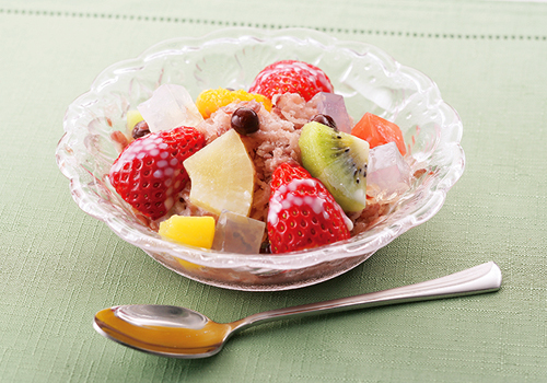 紅豆冰加上新鮮水果,看看這個熟悉的模樣,跟我們常吃的雪花冰有87%像。