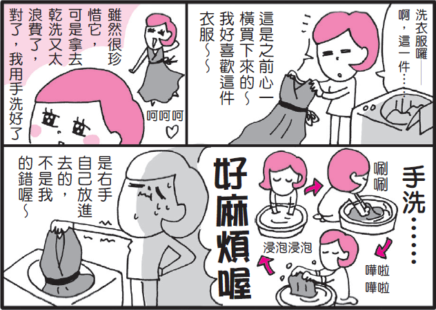 《82年生的金智英》:「衣服不是都洗衣機在洗?」你以為所有髒衣服只要通通丟到洗衣機裡就好了?要判斷衣服質料適不適合機洗還是送洗?甚至是要自己手洗?深色衣服跟淺色衣服要區分,有些媽媽還會仔細地將襪子、內衣褲分批洗,甚至腦袋也要想:「上次換床單是什麼時候?浴巾好像有怪味了?擦手巾、踩腳墊通通一起洗好了......」媽媽們的手都是一邊做、一邊想事情啊!