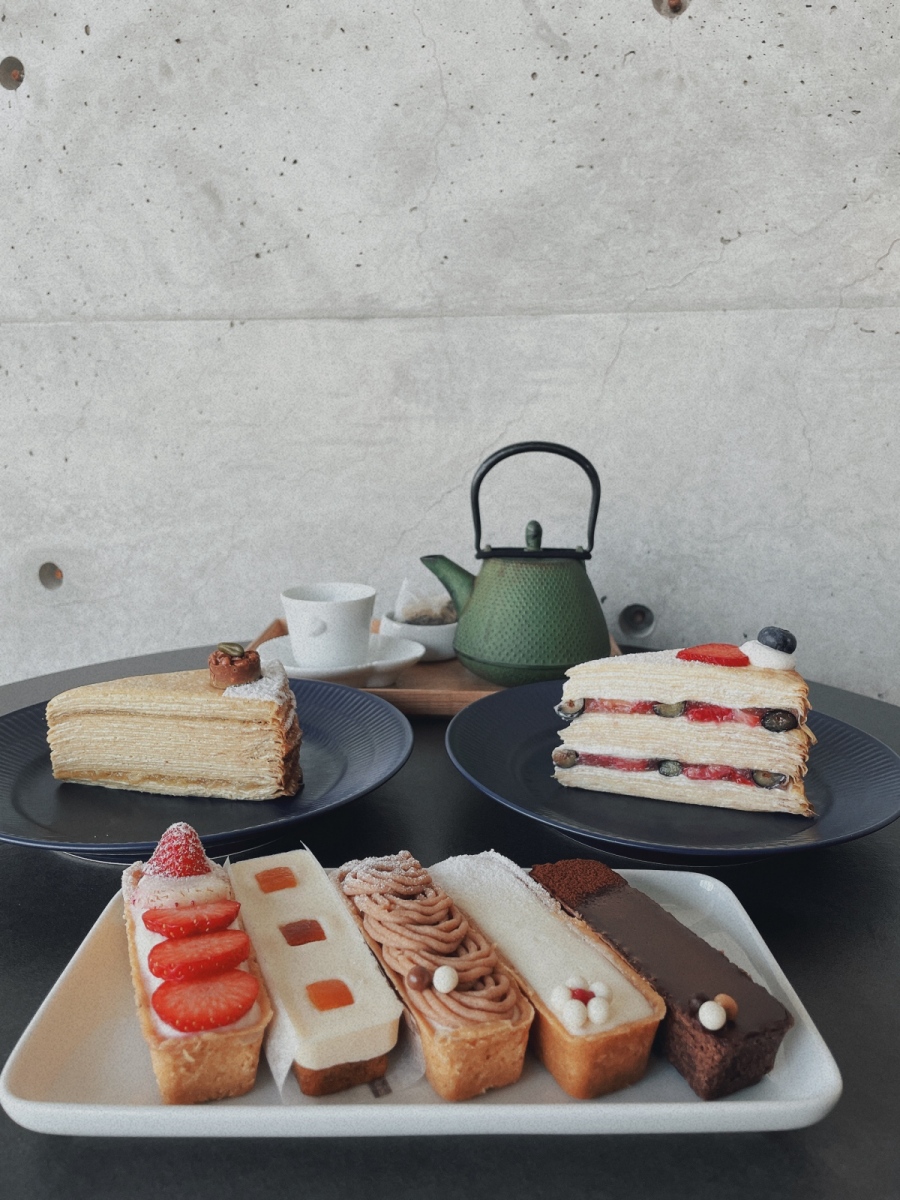他們家千層蛋糕的口味大概有10種以上,價錢約莫在200元上下,以低消150元來說,點一片蛋糕就足矣!圖片中兩款千層口味分別是綜合莓果&栗子,而深藍的千層厲害之處在於每款口味都有40層以上(妞編輯有數),切下去也不會東倒西歪,呈現出很漂亮的斷面,但他們的內餡沒有到飽滿,比較著重在餅皮的口感,妞編輯個人是蠻喜歡的(不會過於甜膩)。