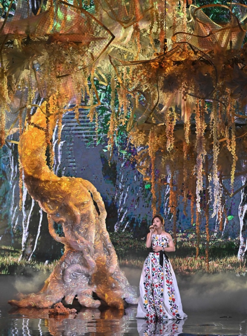 被譽為「情歌天后」的梁靜茹睽違16年再度登上金曲獎舞台演唱,先以〈如果有一天〉開場,之後再以回憶殺金曲〈可惜不是你〉、〈會呼吸的痛〉和〈崇拜〉激起觀眾心中一波波漣漪!療癒的歌聲加上驚艷的舞台效果,讓7分鐘的表演充滿許多亮點。(現場簡直變成KTV呢)