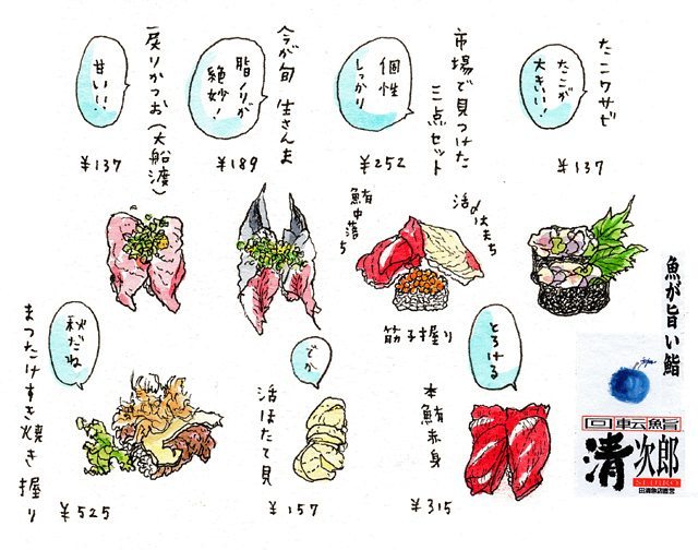 Keiko把最喜歡的壽司店菜色都畫出來,並寫標上口感、特點與價錢~這樣融合視覺、味覺的介紹怎麼可能不心動!(每家都想收入口袋清單嘗試看看呢~)
