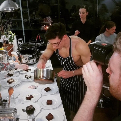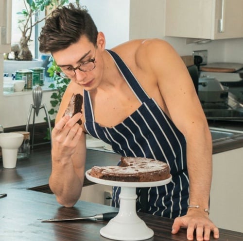 沒錯,就是你眼前看到的這塊罵帖(台)~因為裸上身+單薄圍裙讓這位24歲的英國鮮肉廚師殺出重圍,吸引了無數女性網友的目光!(我們心裡想的是:大肌肌比甜點更吸睛!嗷嗚)