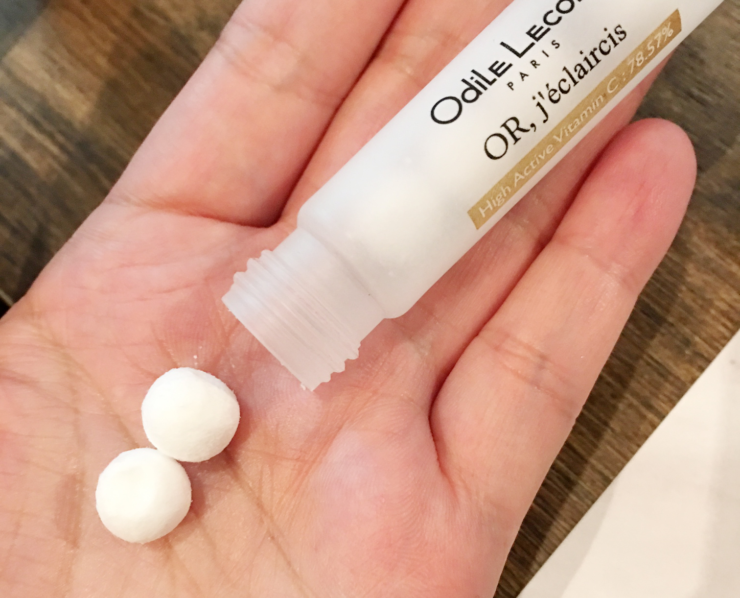 法國貴婦品牌Odile Lecoin,今年也推出維他命C美白安瓶。新科技相當厲害,叫做「3D立體封存技術」,是把高活性的維他命C製成多孔性微球,不需要任何防腐劑,就能完整封存維他命C的活性。