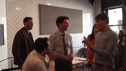賈斯汀杜魯道在紐約的一家餐館用餐時,被兩個美國人截住,並提出了一項要求:「求您了,能來我們這兒選總統嗎?」遭到杜魯道拒絕後,兩人直接跪地不起,惹得杜魯道哭笑不得。