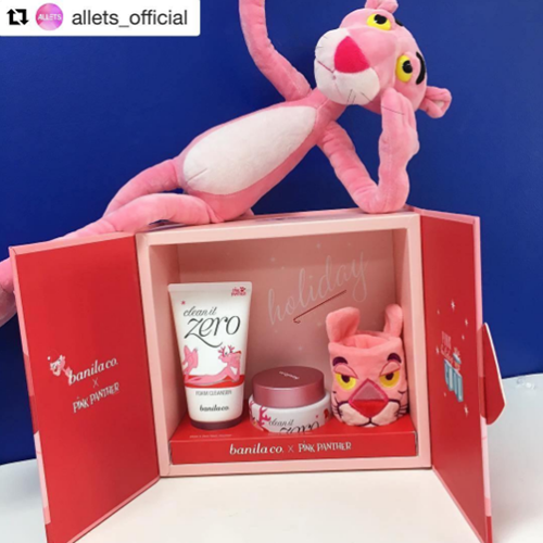 韓國品牌banila co.推出了聖誕節頑皮豹禮盒,裡面的商品也都換上了頑皮豹的外衣。