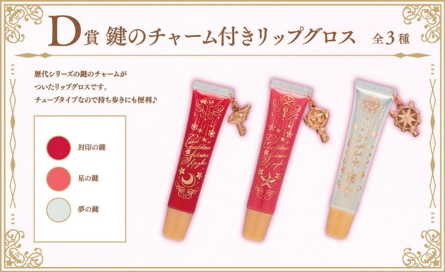 D賞是塗起來閃亮亮的唇蜜,這次的唇蜜做成了軟管狀,不論是攜帶還是塗起來都很方便!旁邊還附有三代的鑰匙,Q到不行~總共有三個顏色,封印鑰匙是紅色,星鑰匙是粉色,夢之鑰匙則是透明的,可以疊加在別的唇膏上。